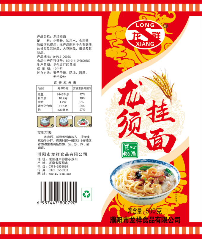 濮陽(yáng)市龍祥食品有限公司位于河南省濮陽(yáng)縣戶部寨鎮(zhèn)小濮州,始建于1994年,前期投資200萬(wàn)元,經(jīng)過(guò)幾年的努力,大力開(kāi)發(fā)市場(chǎng),由于市場(chǎng)的需求量急劇上升,出現(xiàn)供不應(yīng)求,于2004年擴(kuò)建,建成一座新型的現(xiàn)代化面粉加工企業(yè),并擁有全國(guó)先進(jìn)全自動(dòng)生產(chǎn)設(shè)備一套,產(chǎn)量由以前的100噸/天,提高到現(xiàn)在400噸/天。 2012年再次擴(kuò)大規(guī)模申請(qǐng)為濮陽(yáng)市龍祥食品有限公司,注冊(cè)資金500萬(wàn)元。2012年又投資800萬(wàn)元新建掛面生產(chǎn)線一條,日產(chǎn)掛面50噸。龍祥食品有限公司現(xiàn)有職工120余人,總工程師1人,專(zhuān)業(yè)技術(shù)人員10人,經(jīng)濟(jì)師1人,會(huì)計(jì)師1人,銷(xiāo)售人員2人,優(yōu)秀專(zhuān)業(yè)人員20余人。  龍祥公司自創(chuàng)建以來(lái),社會(huì)效益十分可觀。公司一直以“今天的質(zhì)量,明天的市場(chǎng)”為信念,“一切為了客戶需求,竭誠(chéng)追求完美品質(zhì)”為企業(yè)宗旨,走專(zhuān)業(yè)化經(jīng)營(yíng)和職業(yè)化管理的路子。